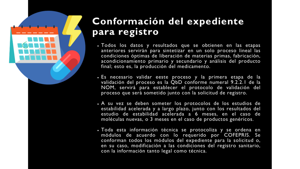 • Planeación de la estrategia regulatoria para optimizar los tiempos.