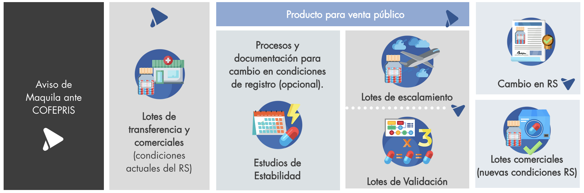 • Cuando existen urgencias de producto, falta de capacidad productiva o, incluso, problemas con el sitio de fabricación autorizado en el registro, el aviso de maquila es un instrumento regulatorio que permite una fabricación inmediata en sitios alternos, tras su sometimiento ante COFEPRIS.